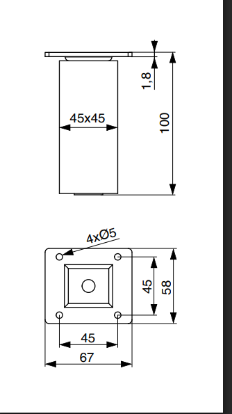 FURNITURE LEG SQUARE 100MM X 45MM X 45MM OAK UNLACQUERED (SET OF 4)
