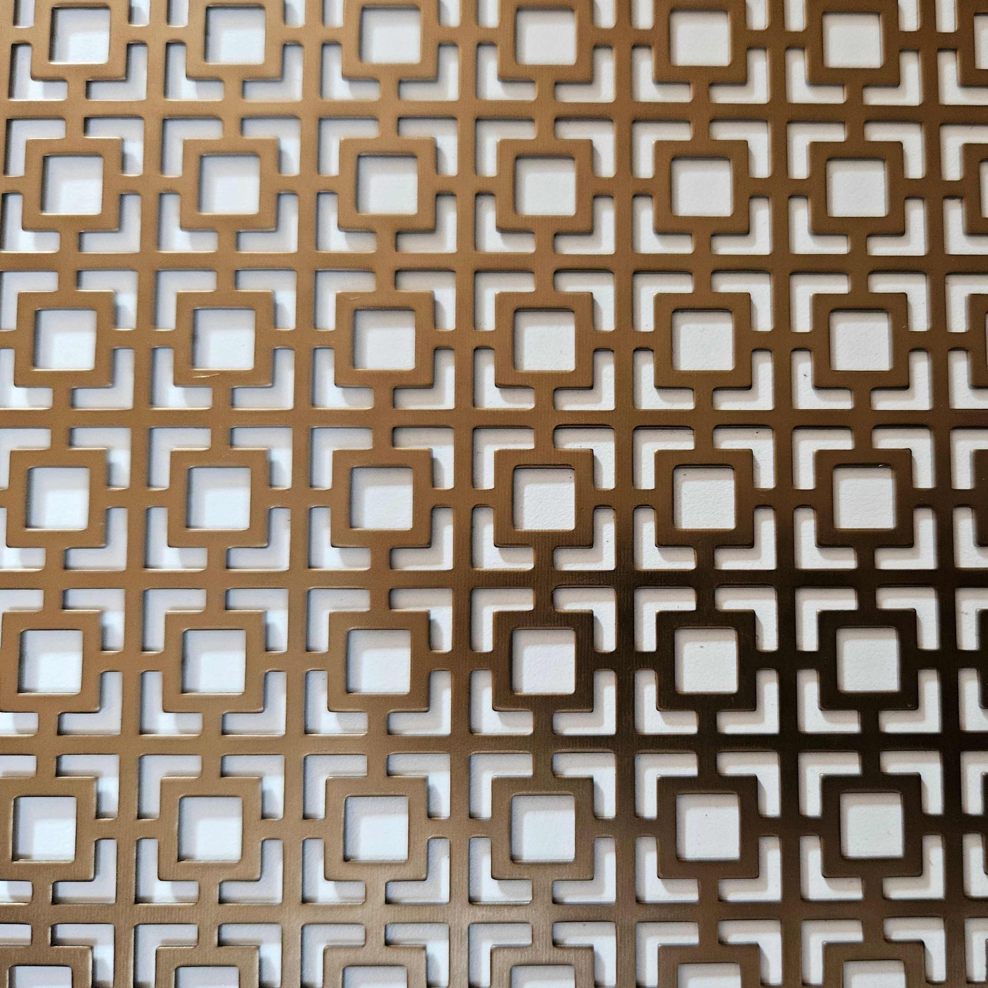 Bronze anodised perforated aluminium Panel size = 670mm x 1000mm which is normally good for one radiator cabinet up to 1200mm wide