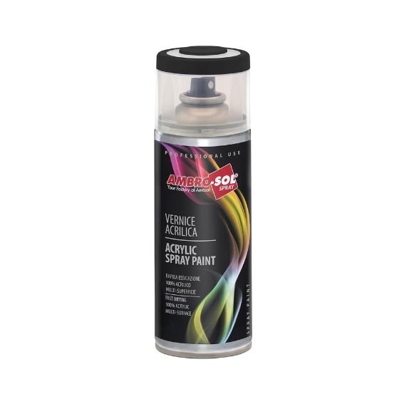 Ambrosol Multipurpose Acrylic Spray Paint Matt Black is a multipurpose paint designed for indoor and outdoor use. It is dry to the touch approximately 15 minutes after use and completely dry approximately 22 hours after application. It can be used on various surfaces, including wood, metal, glass, ceramic, plastering, masonry, doors, furniture, radiators, ornaments, and other objects.